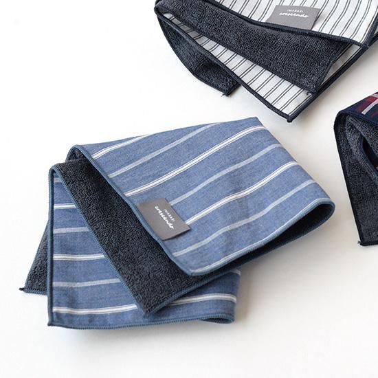 片面はコットン生地。もう片面は今治タオルのハンカチです。タオル生地の色はスタイリッシュなグレイッシュネイビー。