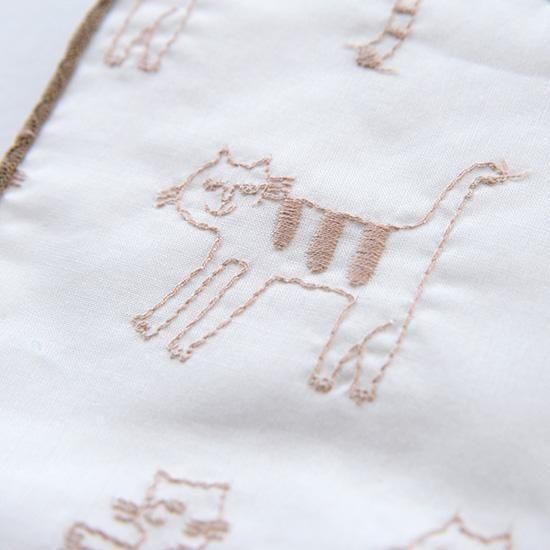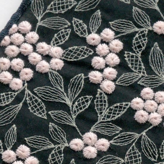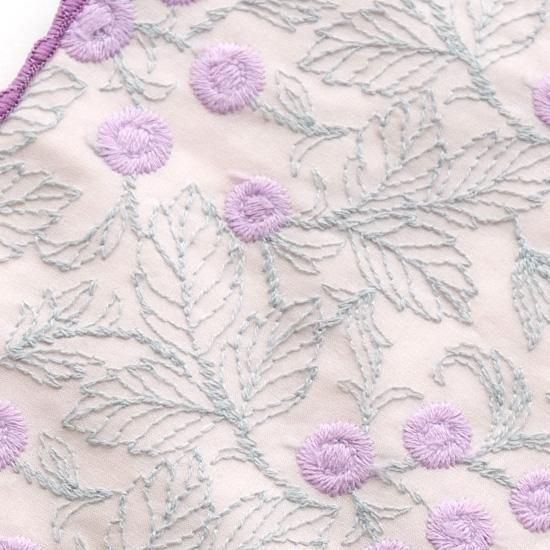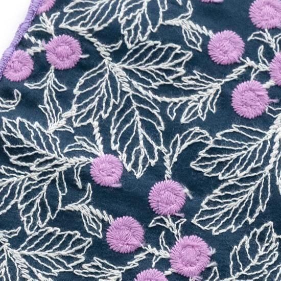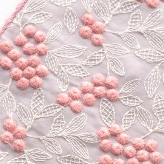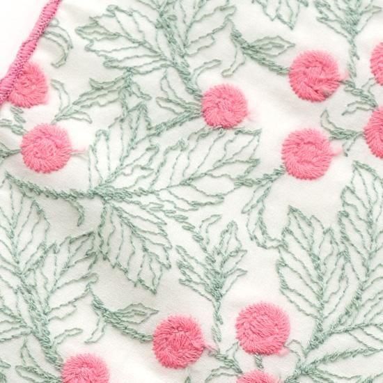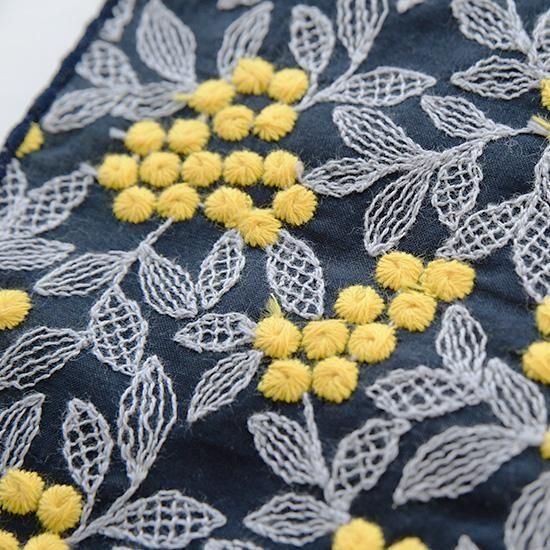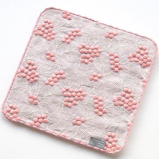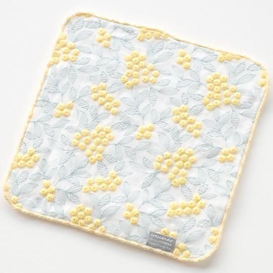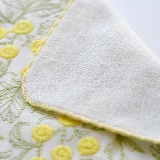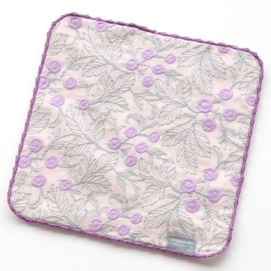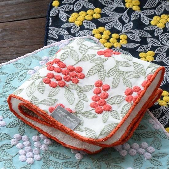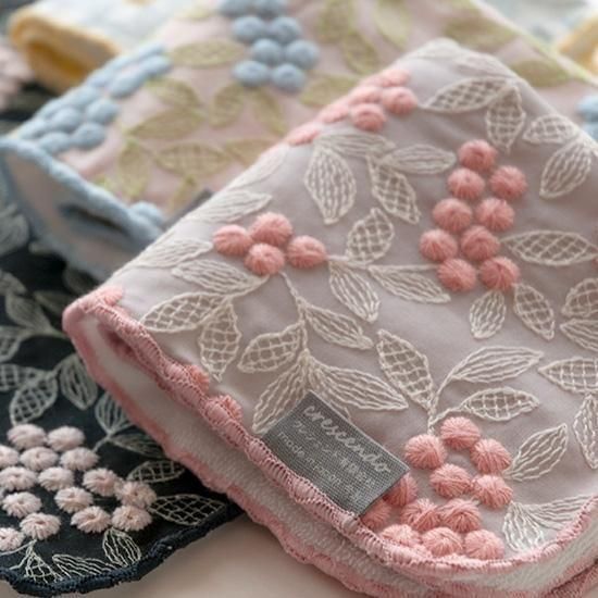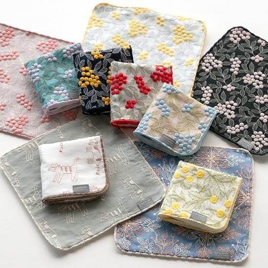 表情豊かな刺繍が華やかなタオルハンカチです。 片面は刺繍レース生地。もう片方は今治タオル。