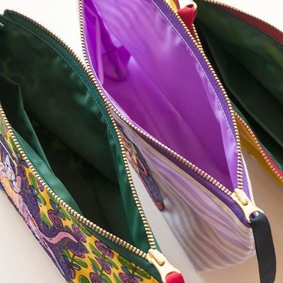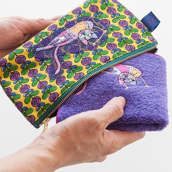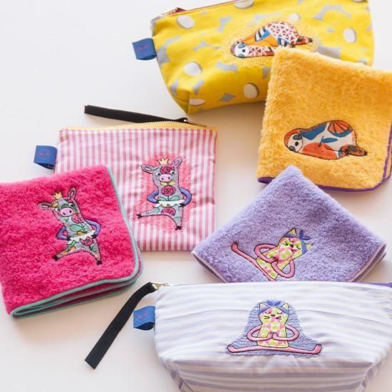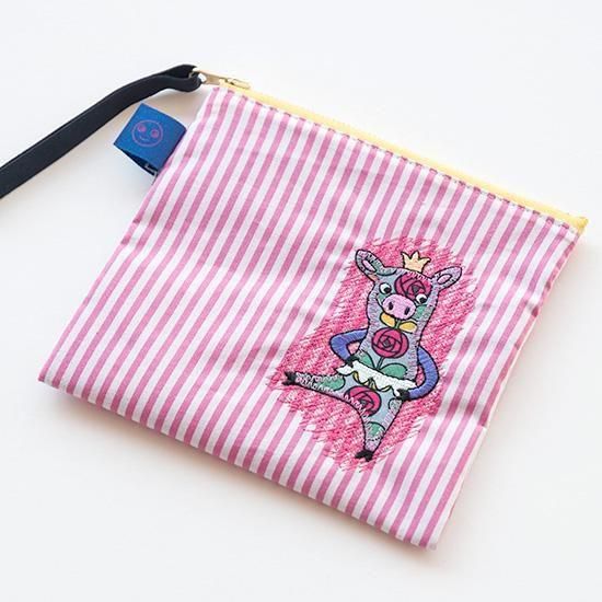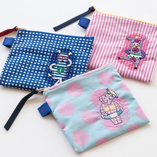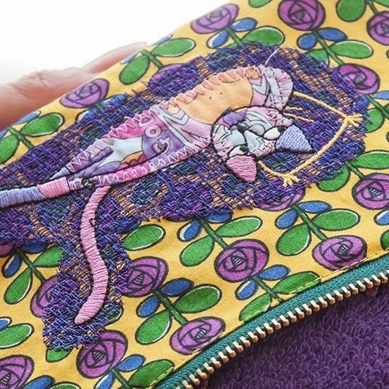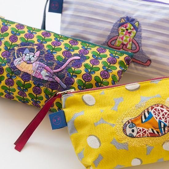 表情豊かなアップリケ刺繍が可愛いポーチ。