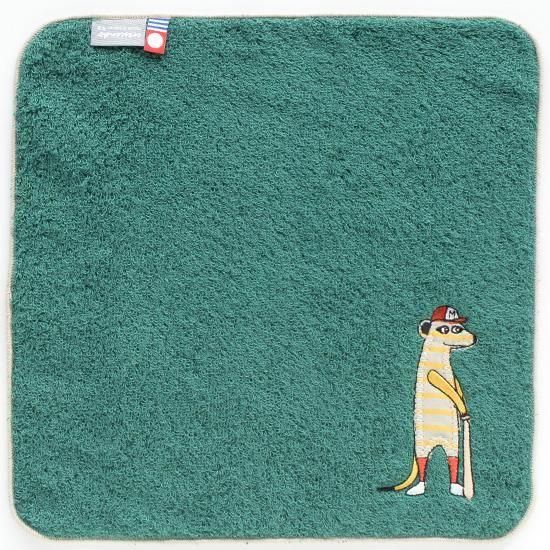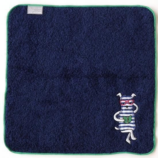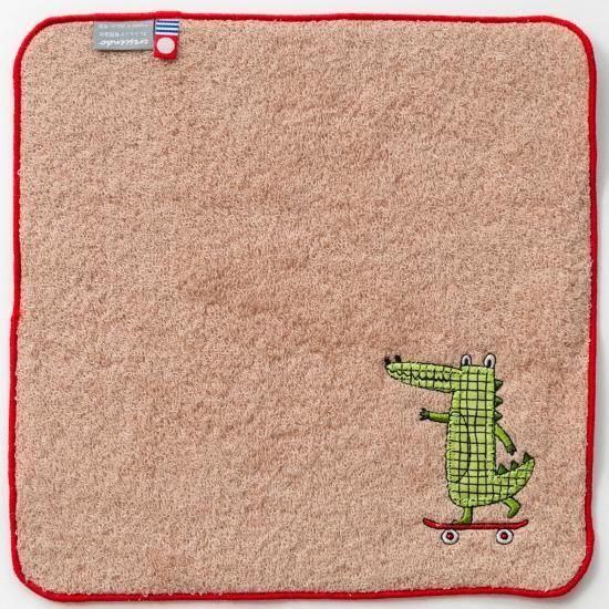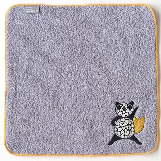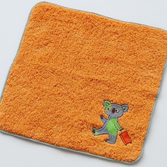 やわらかな肌ざわりと吸水性のよいタオルに、プリントコットン生地でアップリケ刺繍をしました。カラフルな色合いとおちゃめな表情がポイント。
