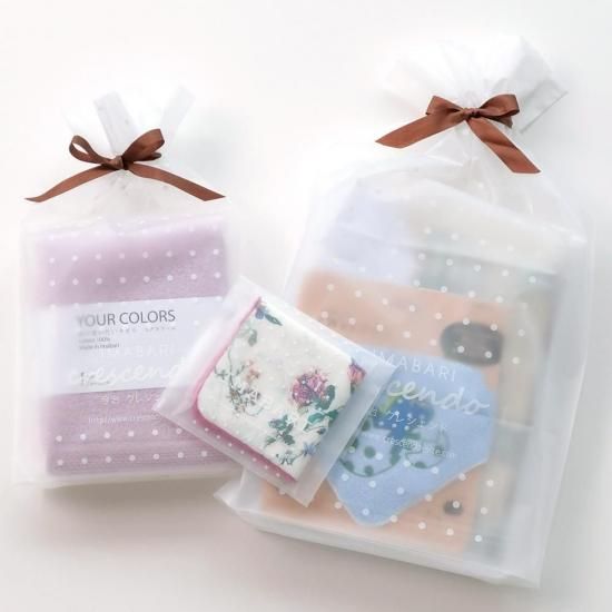 半透明ラッピング袋(ドット)にお入れいたします。